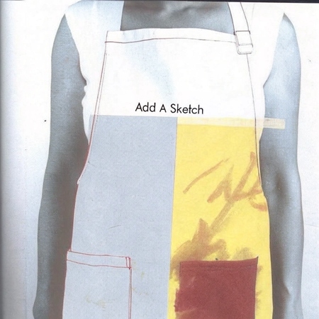Create a realistic mockup of an artist’s apron designed in the brand identity of «add a sketch». The apron should reflect the creative and artistic ethos of the brand, combining functionality with a sense of artistic freedom and self-expression. The design should appeal to artists, creators, and individuals who are passionate about both the process and the end result of their creative journey.