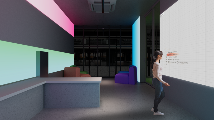 «Генерация» — это место, где каждая зона не только функциональна, но и наделена собственным настроением. Здесь всё «генерируется» и превращается в что-то уникальное и инновационное. Студенты создают, комбинируют и преобразуют окружающий мир через свою индивидуальность, исследования и творчество.