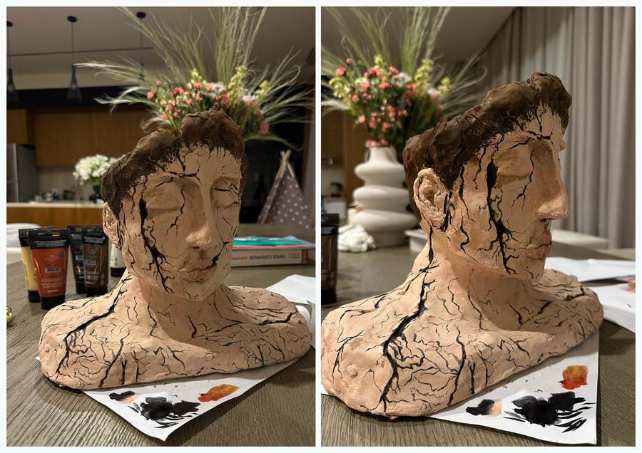 Жизнь всегда находит дорогу к свету — порой через надломы. Разбитая гипсовая голова в этом проекте — не символ конца, а начало новой истории. Там, где раньше были раны и пустота, теперь расцветает са