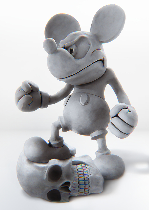 Проект представляет собой проработанные скульптуры черепа человека и персонажа Микки Мауса в полный рост.
