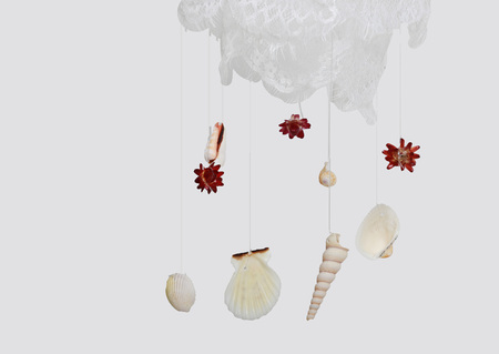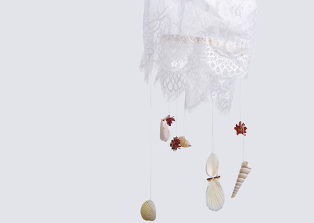 материалы: кружевная ткань, деревянные пяльца, сухоцветы, ракушки, прозрачная леска