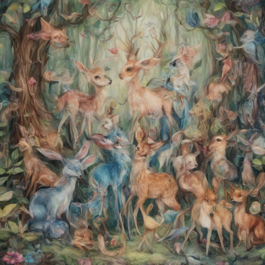 prompt = «A whimsical forest scene with vibrant colors, featuring magical creatures and intricate details, inspired by Ellen Sheidlin’s enchanting style.»