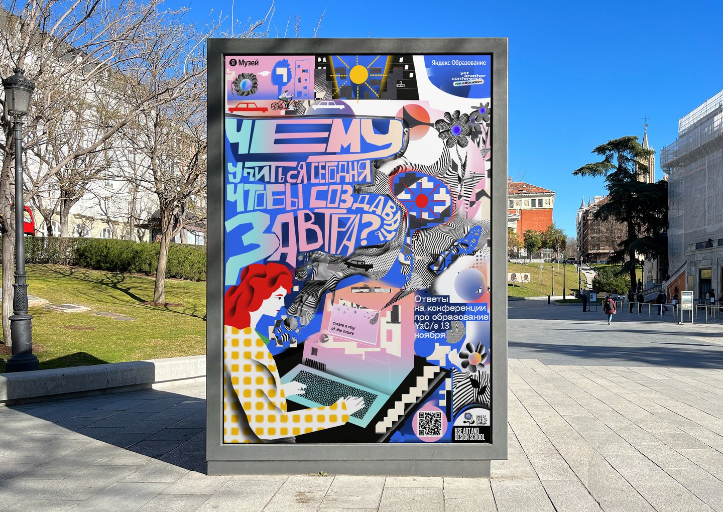 Poster for the Yac/e 2024 conference from Yandex. The goal was to develop a poster based on the phrase «What is to learn today to create tomorrow?» using gradient filter and neural technologies.