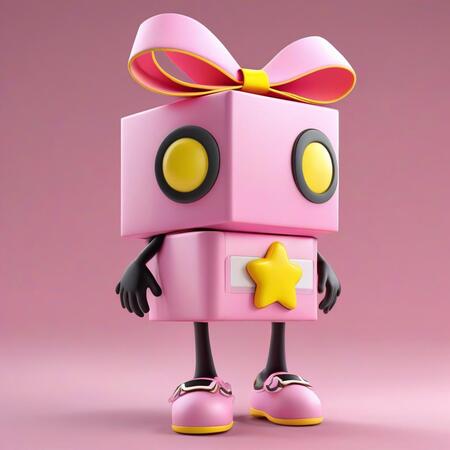 В Leonardo были сгенерированы уже 3D-изображения подарочка. В этом варианте у персонажа получились необычные пропорции тела и необычное, но удачное расположение глаз.