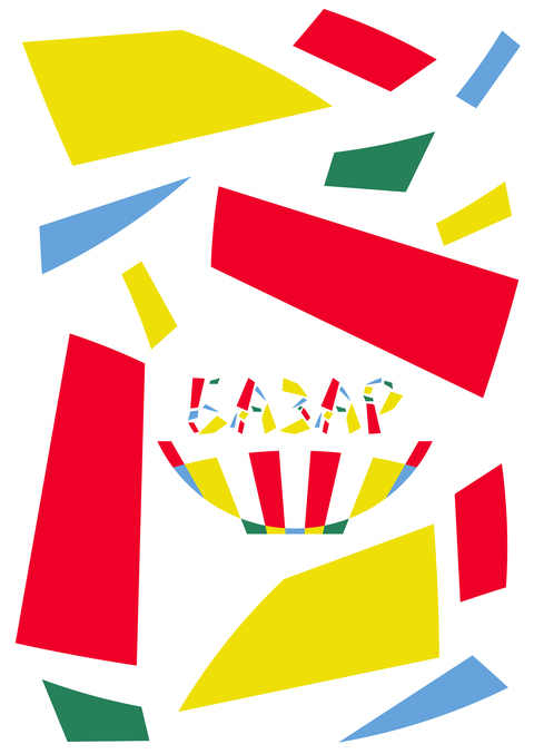 Фирменный стиль нового фестиваля «Базар» основан на образе мозаики. Собираясь вместе, простые формы складываются в логотип, шрифт, паттерны и плакаты. Разбираясь на составные элементы, они превращаются в разноцветные конфетти.
