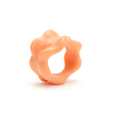 Промпты: 1 — biomorphic ring, soft inflated organic shape, smooth matte surface, pastel monochrome color, abstract flowing continuous structure, minimalistic design, studio lighting, white background, high quality product render