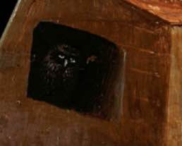 Сова, спрятавшаяся в тени, как образ зла и порока. Нож, символизирующий грех и опасность.