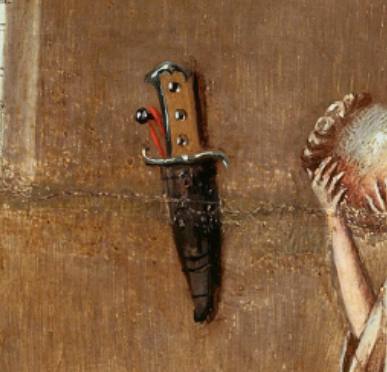 Черт, пытающийся увести в грешный мир людей, пронизан крестом, что визуализирует тему духовного противостояния злу. (Семь смертных грехов и четыре последние вещи / Иероним Босх / ок. 1500)