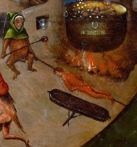 Ад — одна из главных тем Иеронима Босха. В европейской культуре фигура дьявола и описание его обители, какими мы знаем их сейчас, появились достаточно поздно, но с приближением конца Средневековья образы зла становились все более изощренными и детальными, наконец достигнув своего апогея на полотнах Босха. Пространство ада у художника кишит демонами, монструозными существами, странными гибридами, наполнено причудливыми механизмами и разнообразными орудиями пыток. Все эти элементы собираются в панораму, в которой человеческие грехи и пороки обретают зримую форму. Зло у Босха ощутимо и настолько визуально неприятно, что щекочет нервы даже современному зрителю. Такая визуальная гиперболизация ужаса работает как нравственное предупреждение: продолжая поддаваться своим низменным желаниям и порокам, человечество обречено на вечные адские муки.