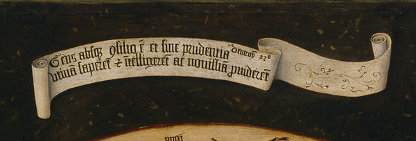 На лентах две цитаты из Библии: «Ибо они народ, потерявший рассудок, и нет в них смысла» (Втор. 32:28) «Сокрою лицо мое от них и увижу, какой будет конец их» (Втор. 32:20) Эти строки о том, что человечество утратило возможность различать добро и зло, видеть истину и отдалились от Бога, поэтому он перестает покровительствовать им, позволяя им испытать последствия своих поступков.