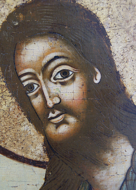 Слева: Спас Нерукотворный. Новгород, ок. 1100 г. Анонимный автор. Третьяковская галерея, Москва. Справа: Икона «Иоанн Предтеча» из деисусного чина. Начало XVIIIв. Русский Север.