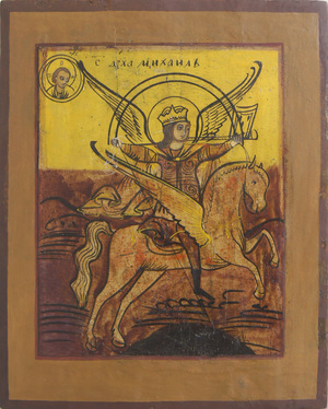 Старинная Икона «Архангел Михаил — Грозный воевода». Середина XIX в. Владимирские сёла.