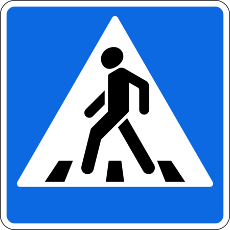 Слева: Дорожный знак 4.5.1 «Пешеходная дорожка». Автор: Юкатан. 2011 год. Справа: дорожный знак 5.19.1 «Пешеходный переход». Автор: Николаев. 2014 год.