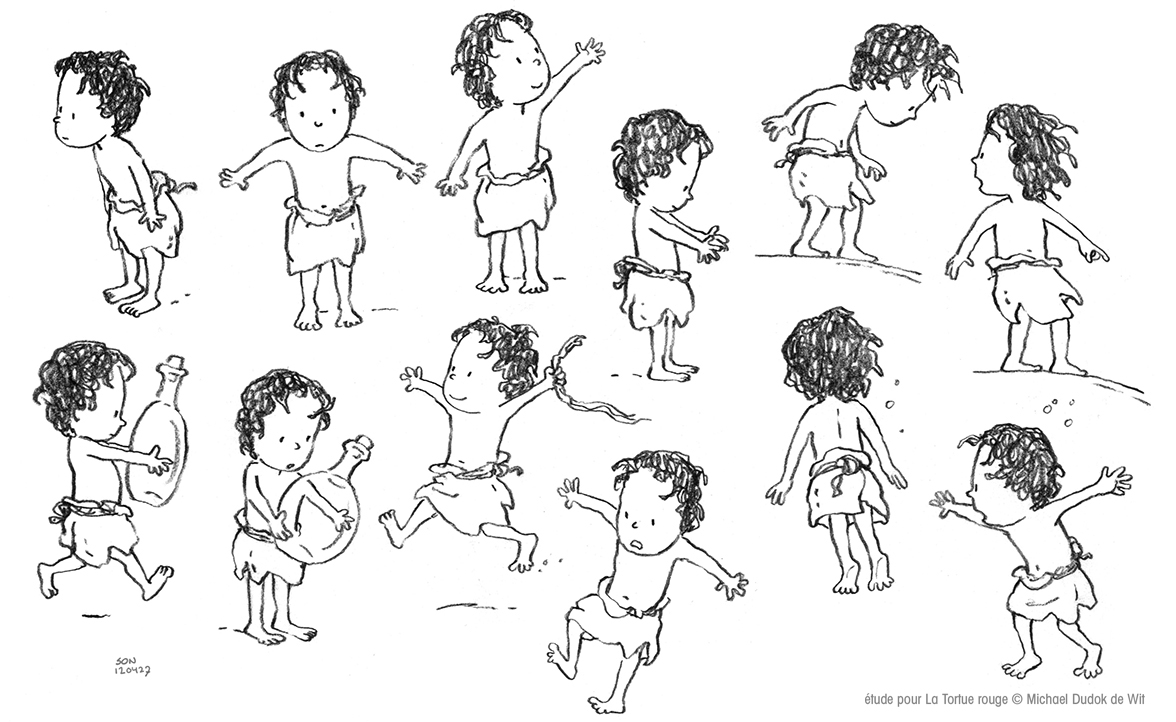 Кадр из мультфильма Михаэля Дюдока де Вита «Красная черепаха» 2016 года/Концепт-арт персонажа к мультфильму Михаэля Дюдока де Вита «Красная черепаха» 2016 года