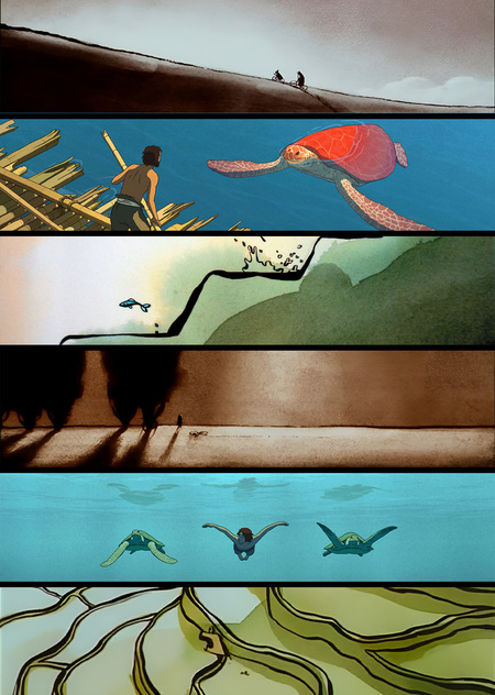 Кадры из мультфильма Михаэля Дюдока де Вита «Красная черепаха» 2016 года