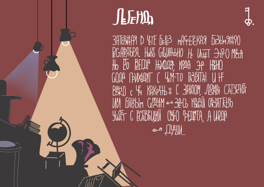 Затерянная в лесах мастерская реставратора, предающего сломанным вещам новое, метафорическое значение.