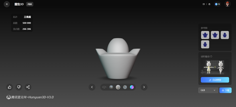 На основе полученных изображений были сгенерированы 3D модели с помощью Hunyuan 3D.