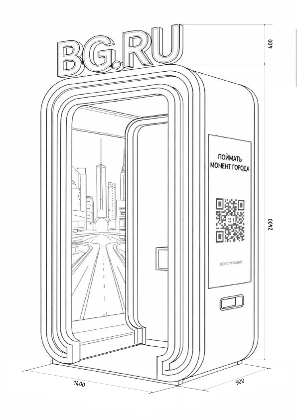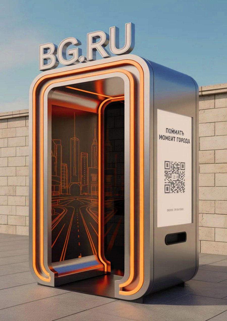 Этот вариант фотобудки представляет собой городской портал, который символизирует вход в цифровой мир BG.RU.