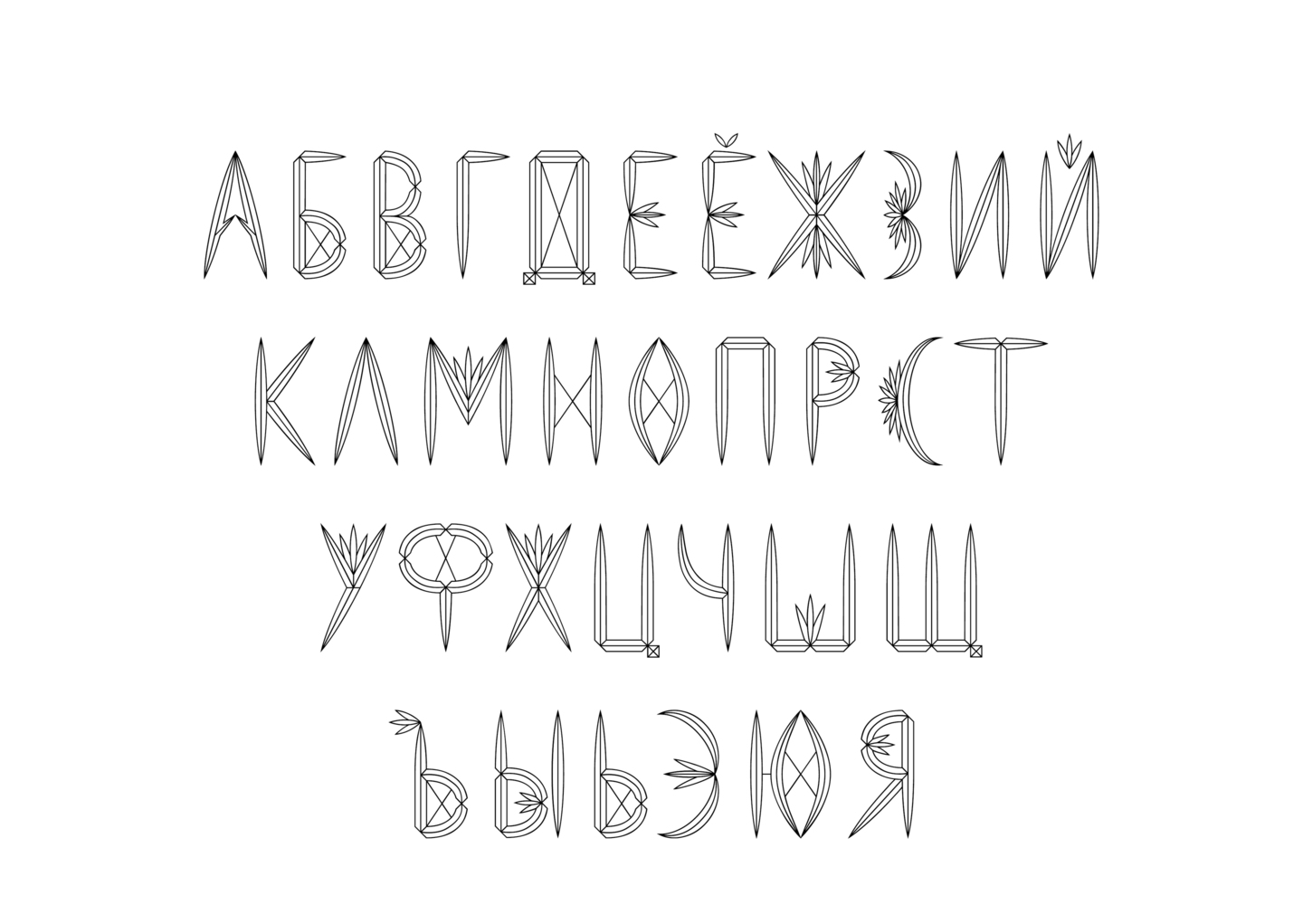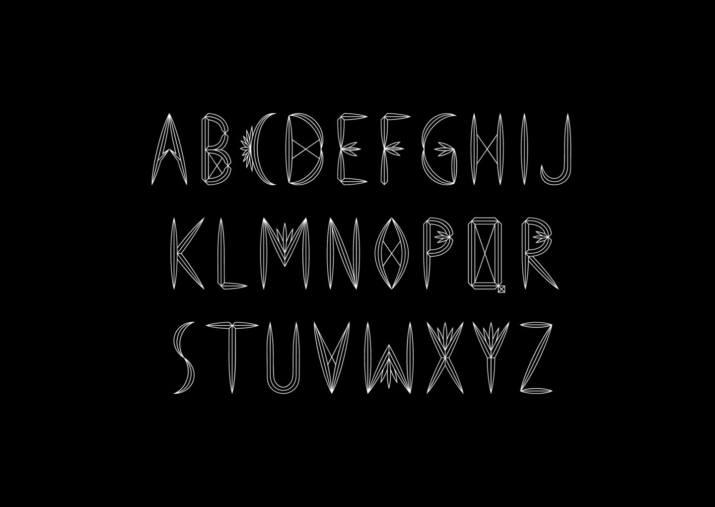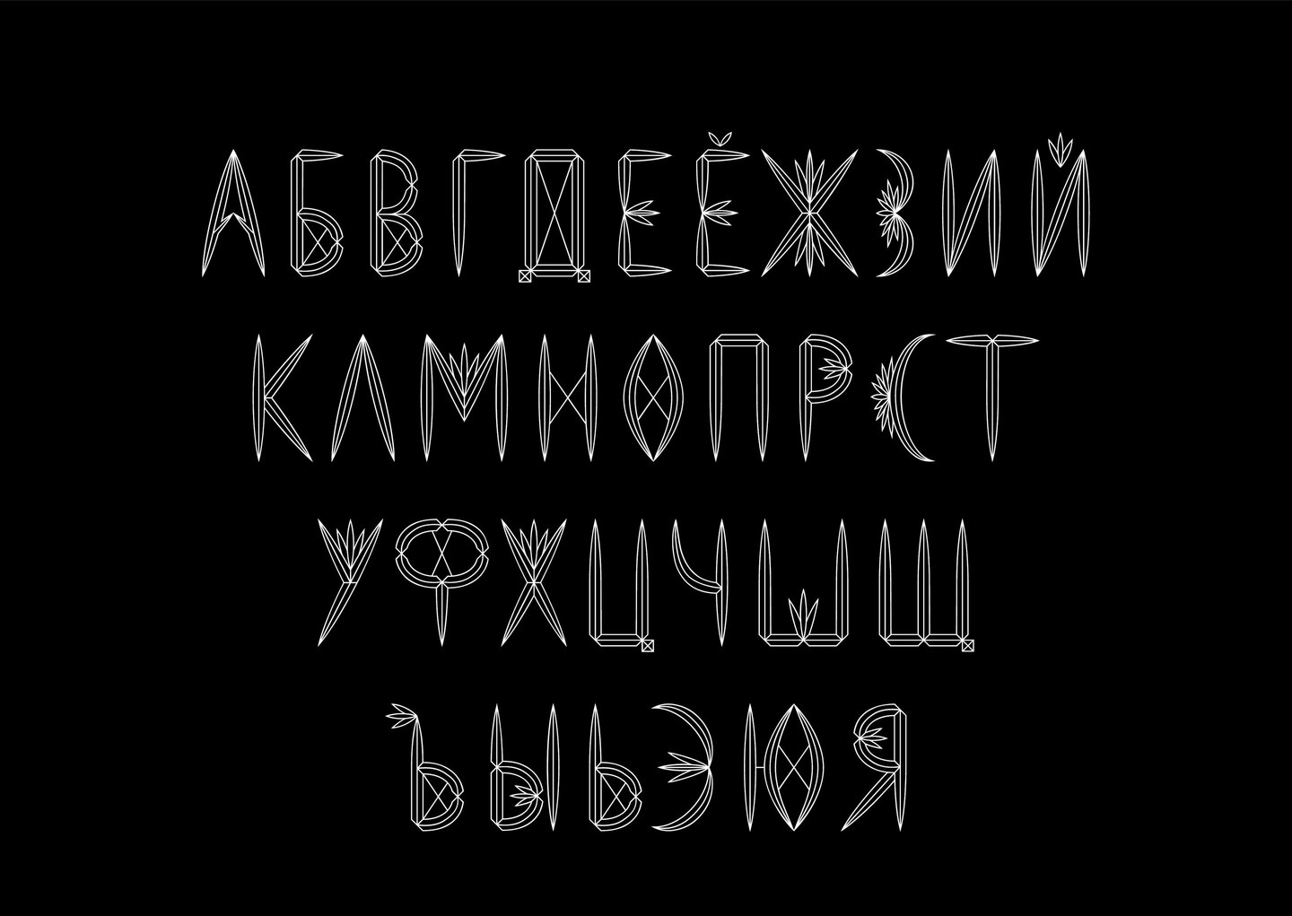 Проект вдохновлён узорами на хрустальной посуде — листьями и цветками папоротника. Шрифт одновременно геометричен и изящен плавными контурами.