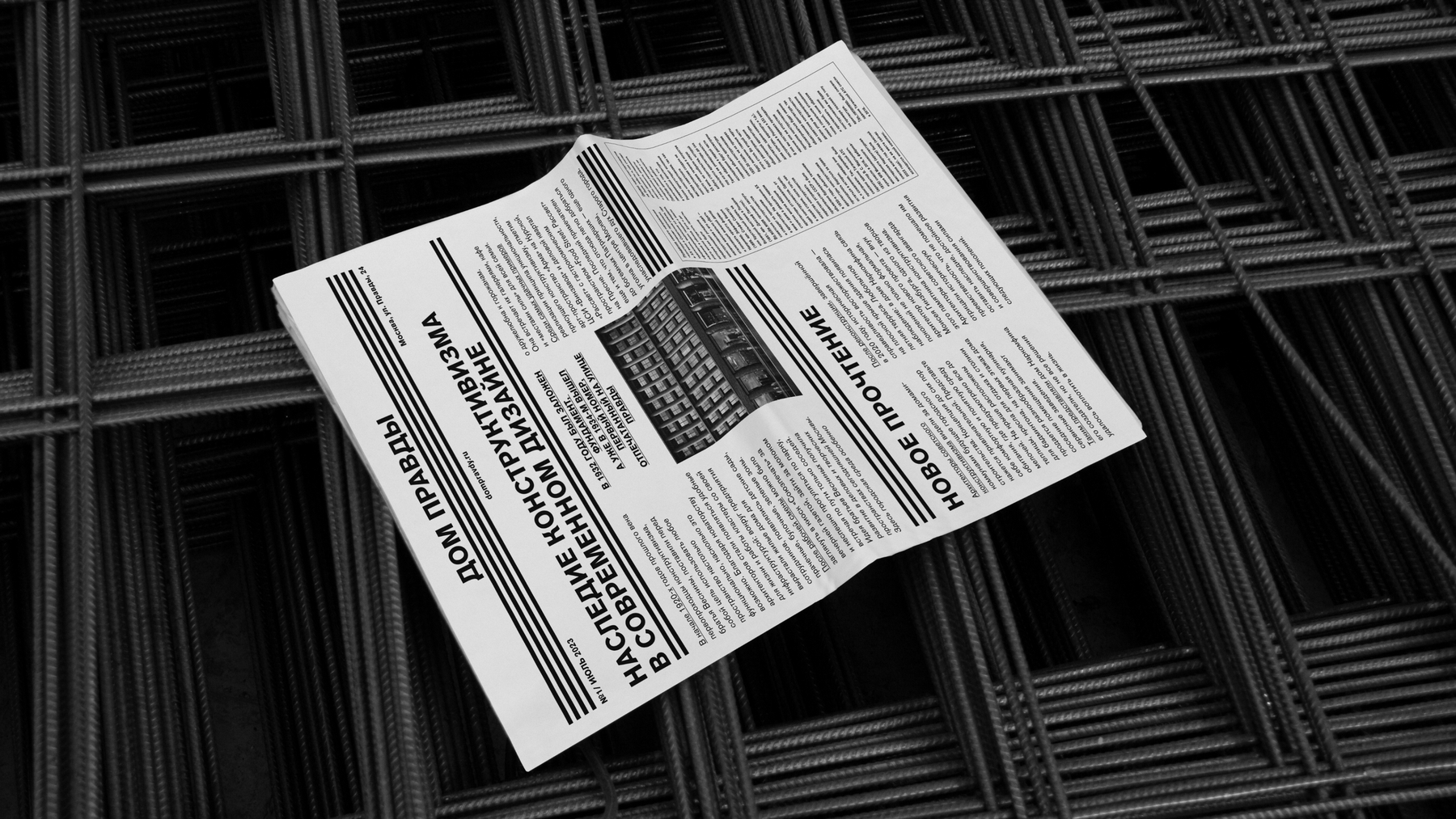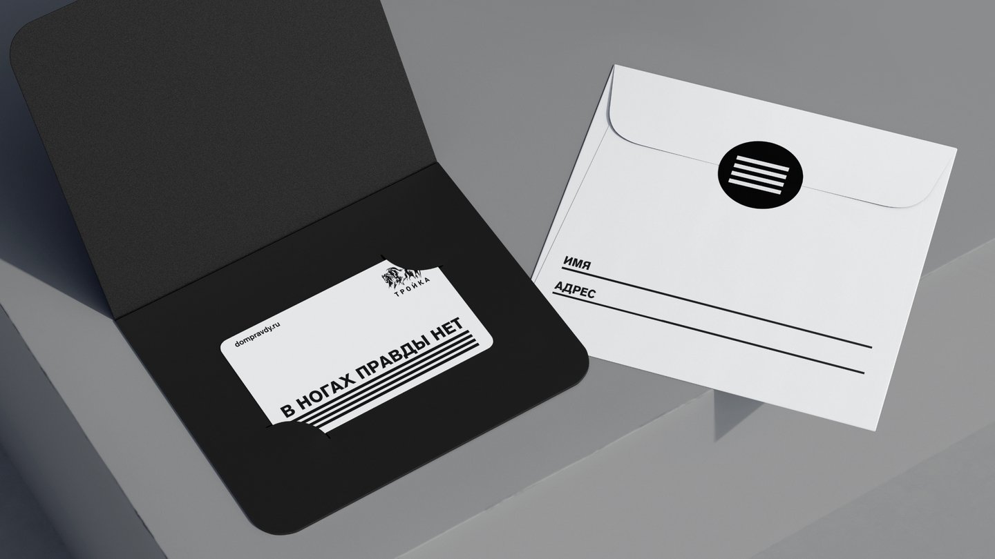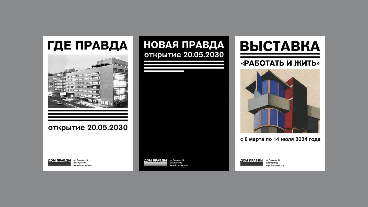 Фирменный стиль основан на архитектурных особенностях здания комбината газеты «Правда» и течении конструктивизма, в котором построено пространство. Так, логотип отражает не только визуальные особенности дома, составленного из линий и имеющего вытянутую форму, но и функциональные: знак напоминает стопку бумаг, а также массив заголовка и основного текста в газете, что отсылает к истории и первоначальному назначению «Дома Правды»
