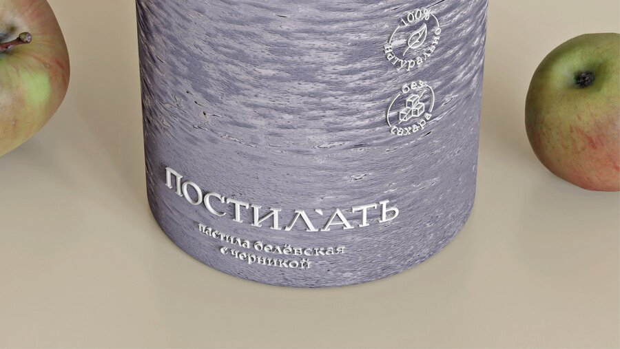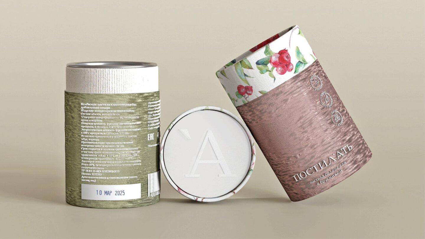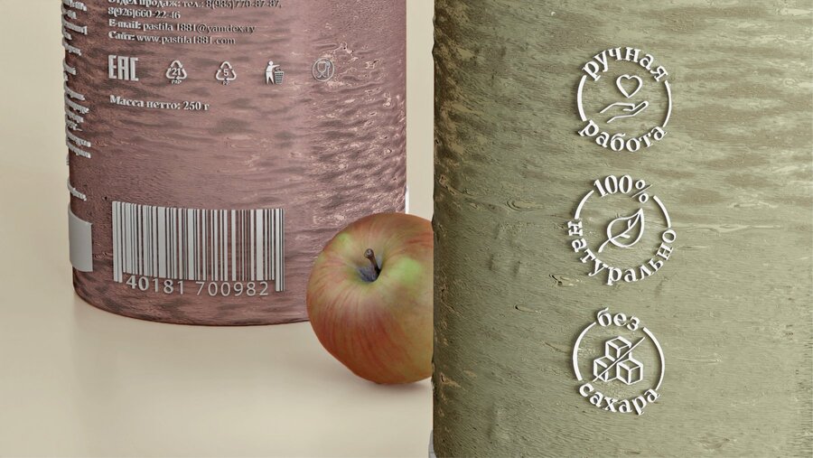 Идея упаковки подчёркивает натуральность продукта: форм-фактор тубуса отсылает к стволу яблони. Так, нижняя часть приобретает текстуру коры дерева, а верхняя символизирует цветущую крону с плодами