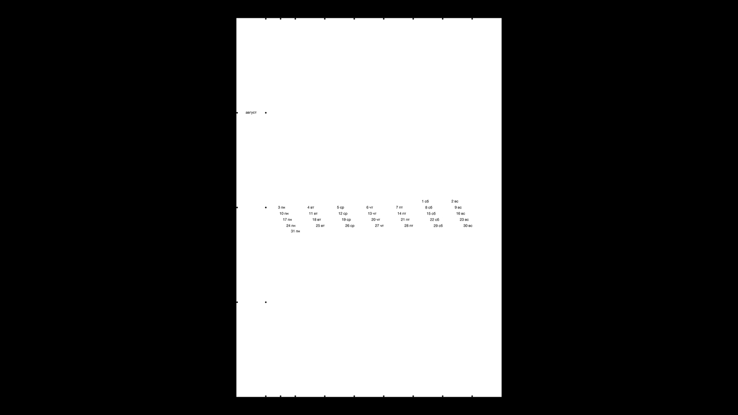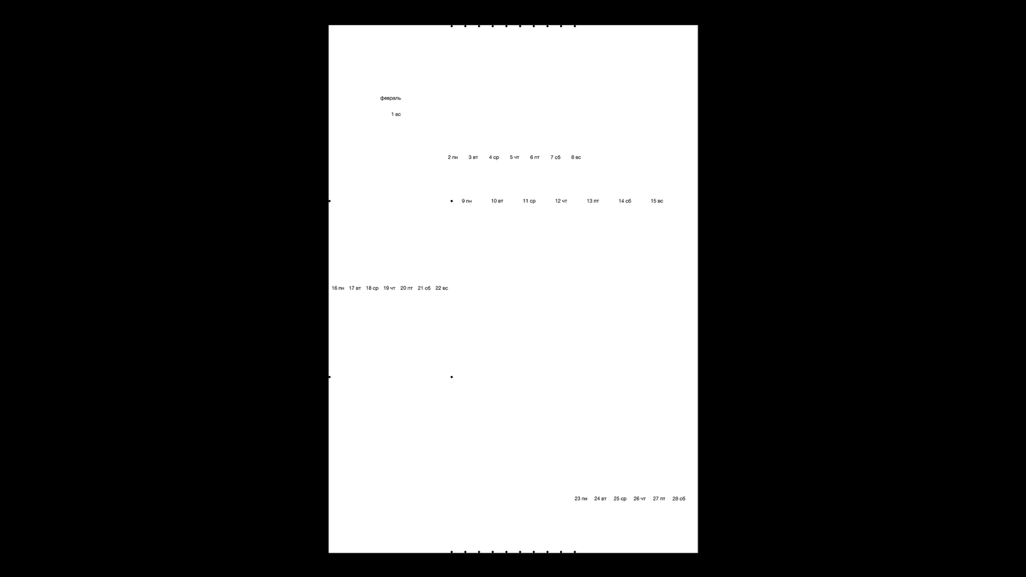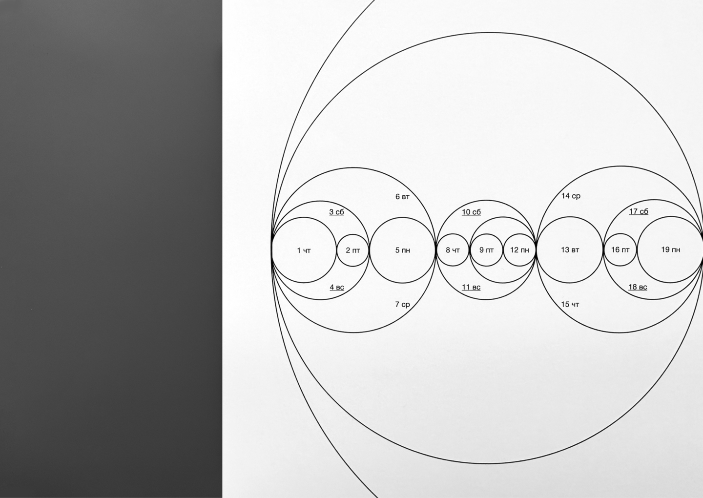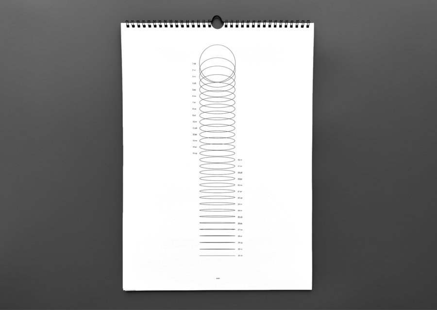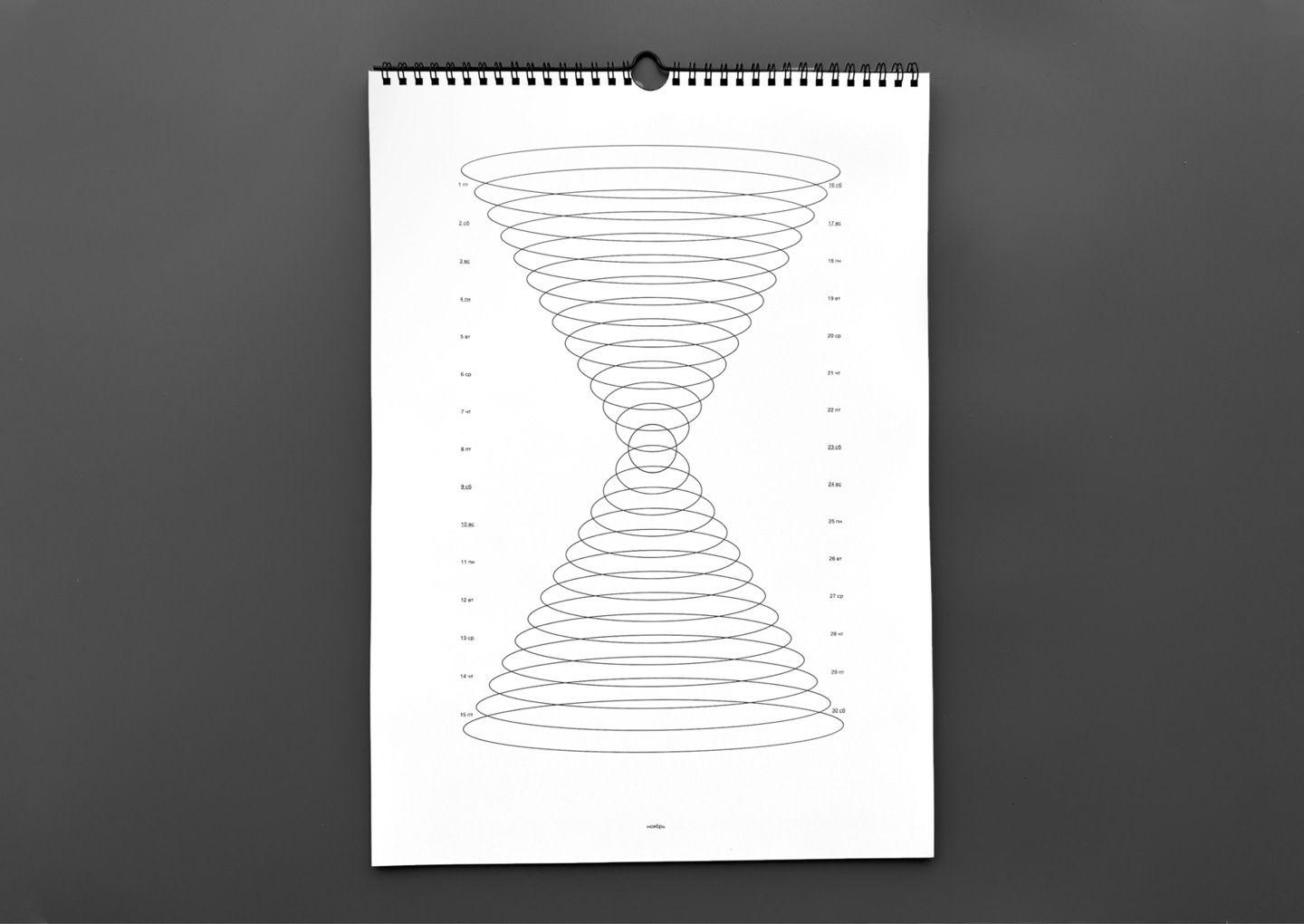 Здесь сетка используется свободно: месяцы заходят друг в друга и свободно пересекаются, тем самым показывая что время и его периодизация — условны, между сущностями времени, будь это день или месяц, нет чётких границ