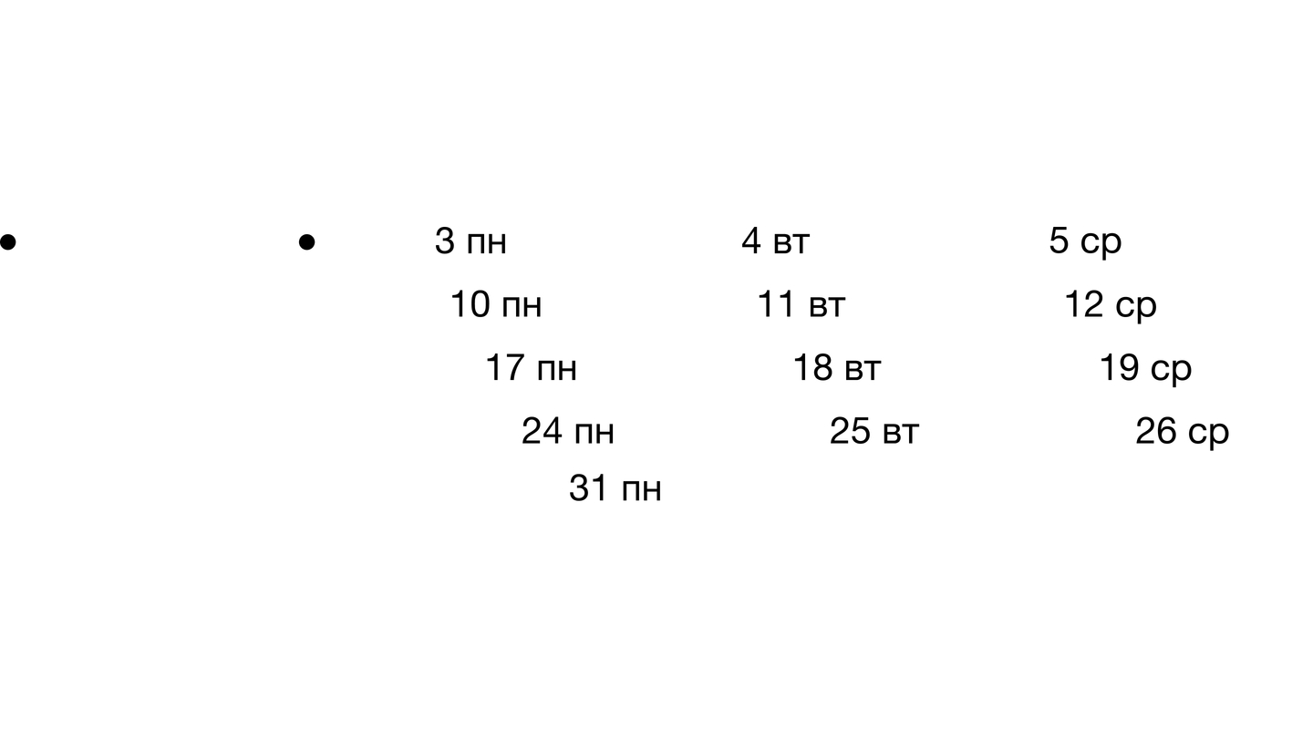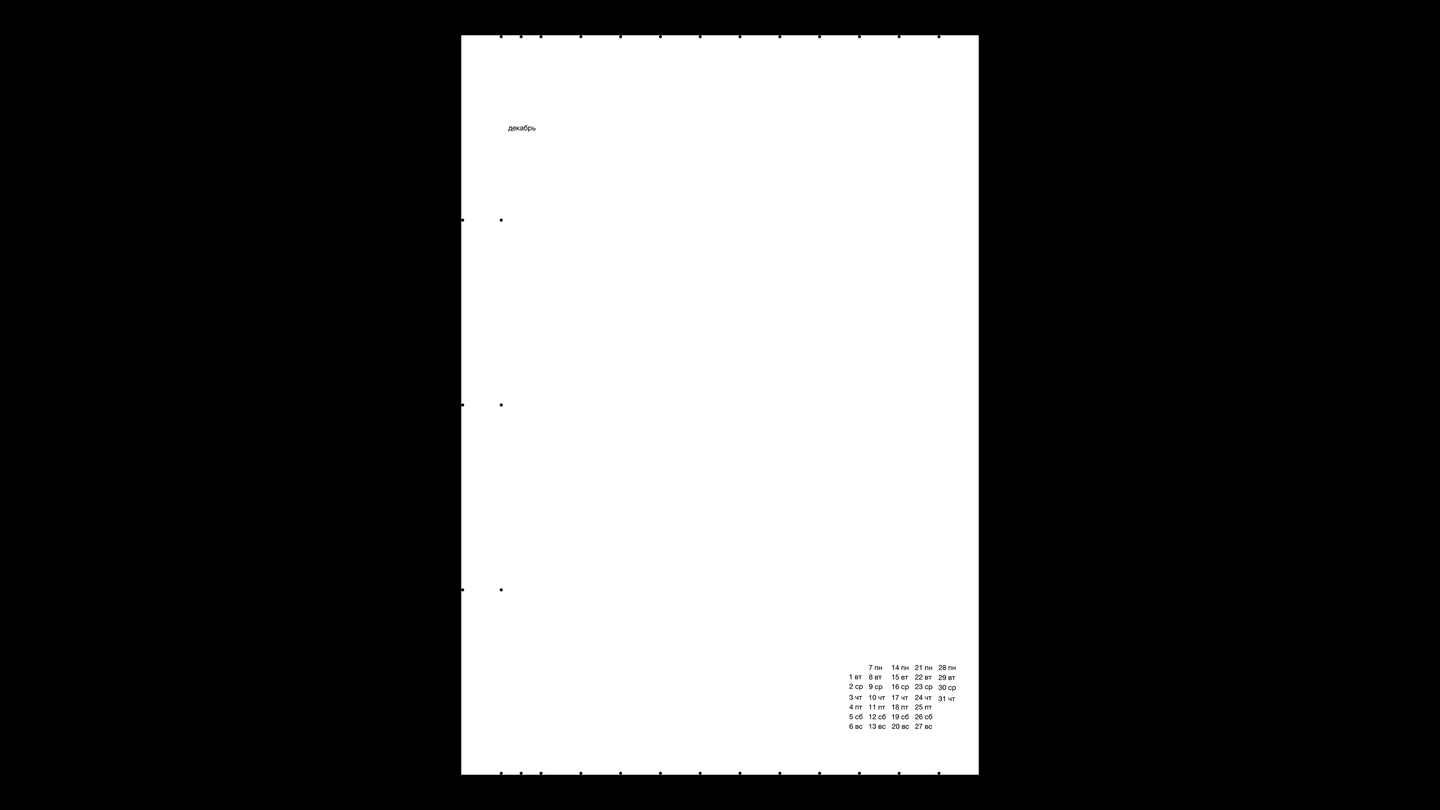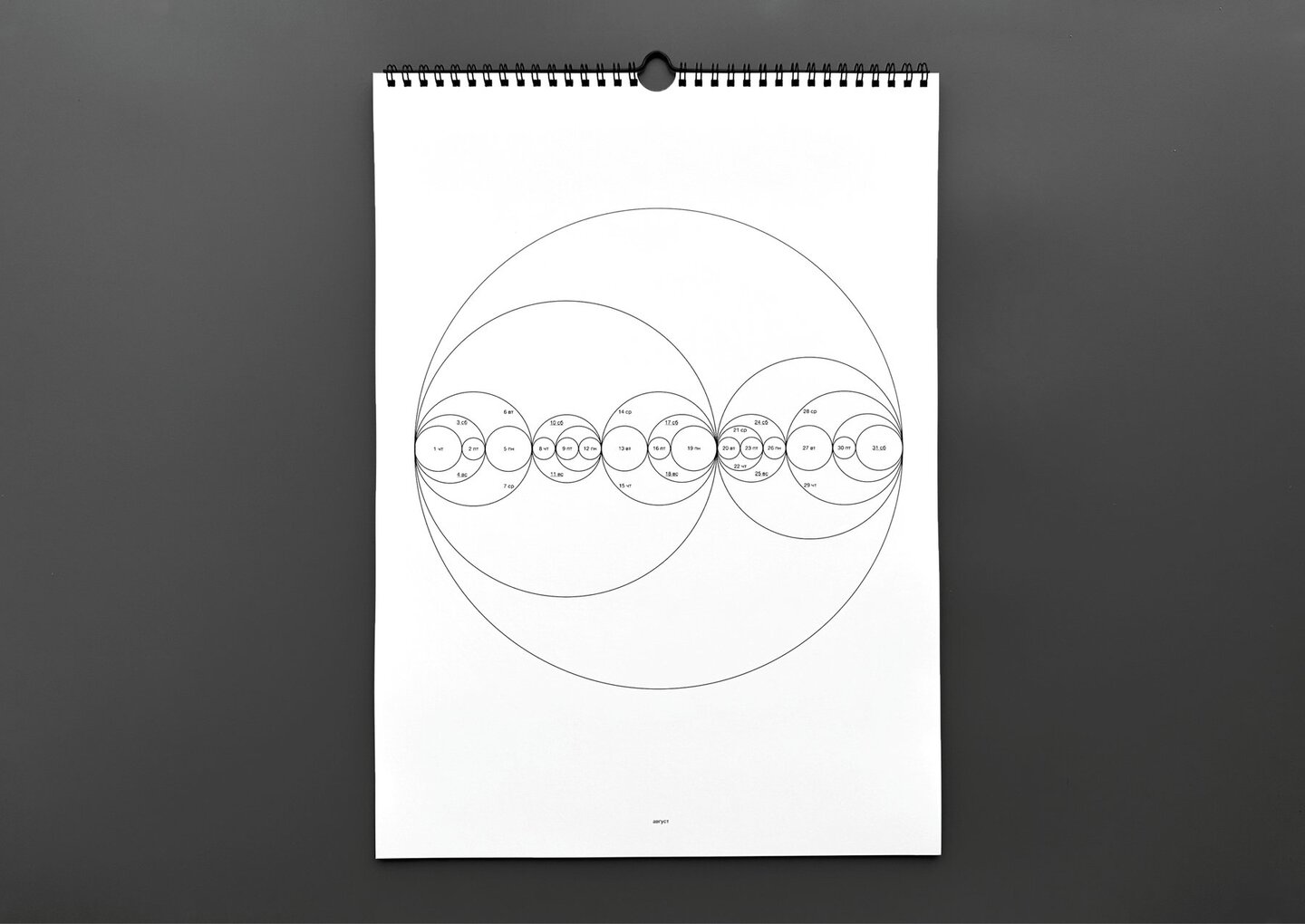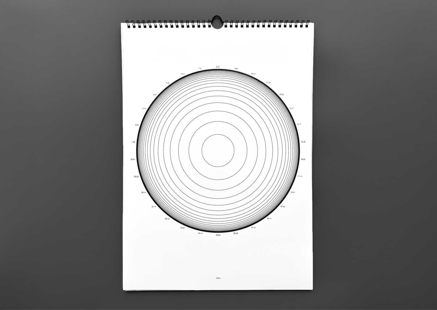Работа становится исследованием точки и её возможностей в контексте каждого месяца и его характерных особенностей (погоды, природных явлений). Задача — найти в точке и с её помощью систему для календарной сетки. Абстрактные композиции создают у каждого зрителя уникальные ощущения от сезона и месяца, предлагая погрузиться в собственные восприятия и задуматься о глубине понятия такой простой фигуры, как точка