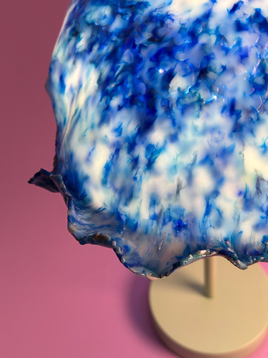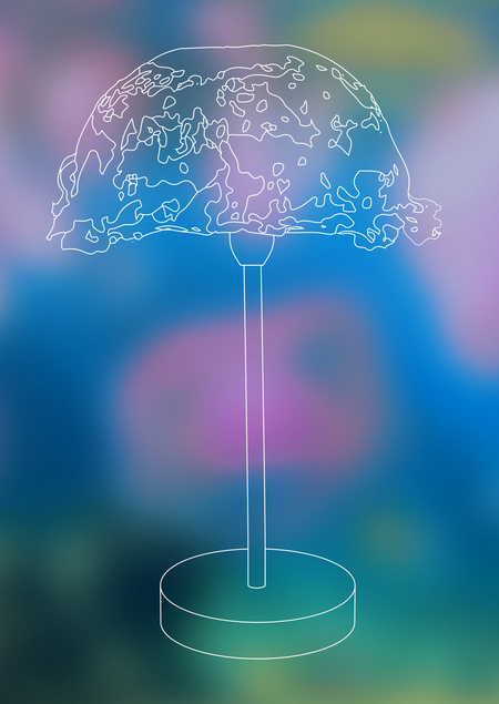 To support the organic, asymmetric form, a custom structural component was engineered, allowing the «jellyfish» lampshade to securely balance on the stand. This construction resolves issues of stability and center of gravity while preserving the visual lightness and floating effect of the object.