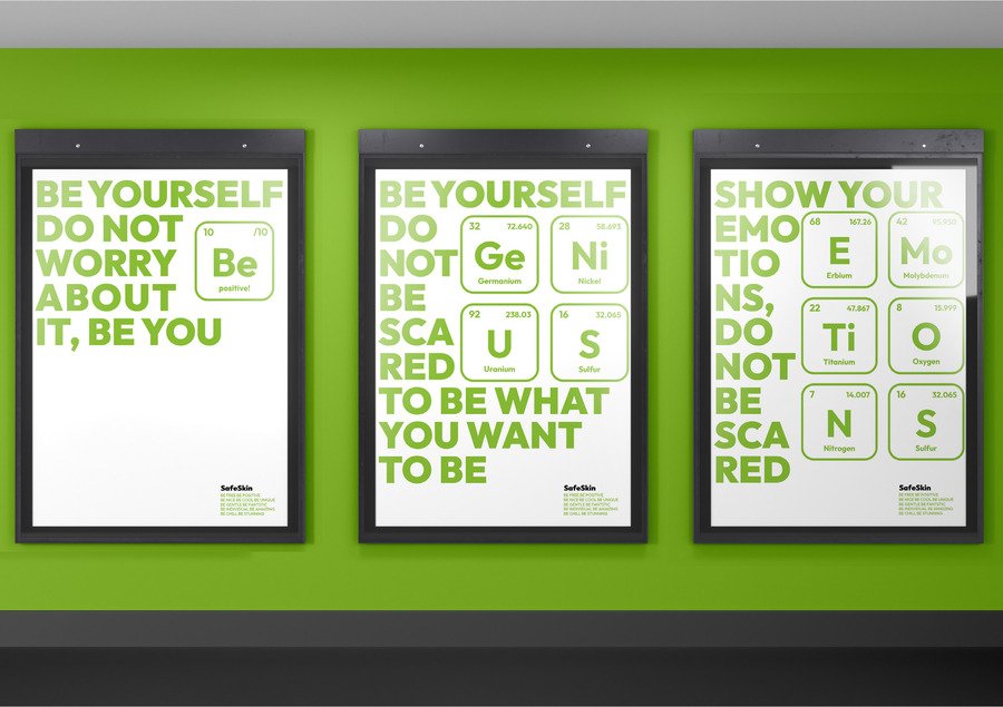 The SafeSkin identity is built around a supportive, calming, and emotionally warm communication system designed for teenagers with atopic dermatitis. Since flare-ups are often triggered or intensified by stress, the brand’s core metaphor focuses on gentle, encouraging messages embedded directly into the packaging and visual language. These short phrases act as small moments of care in a stressful daily routine, helping teenagers feel seen, understood, and emotionally supported in school and beyond.