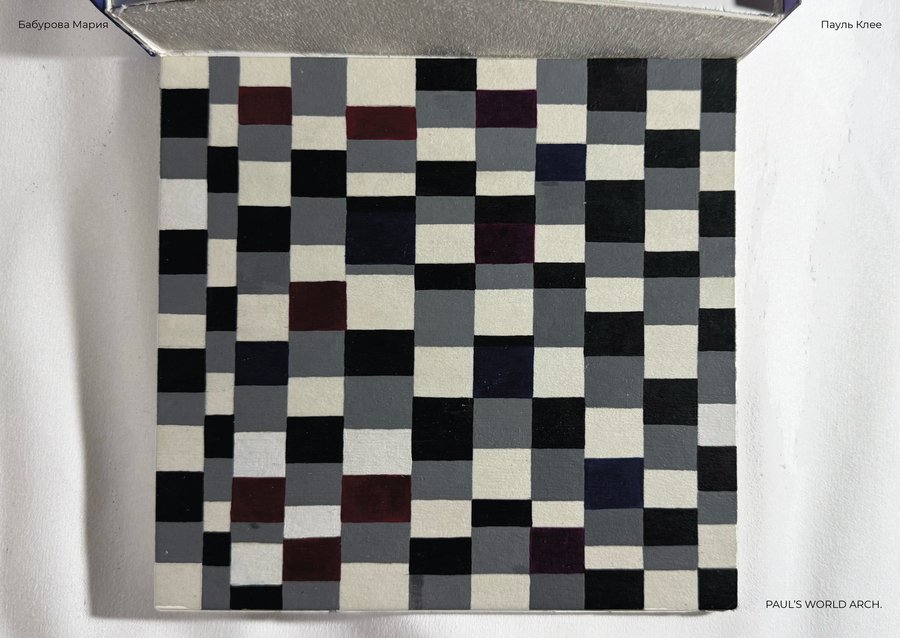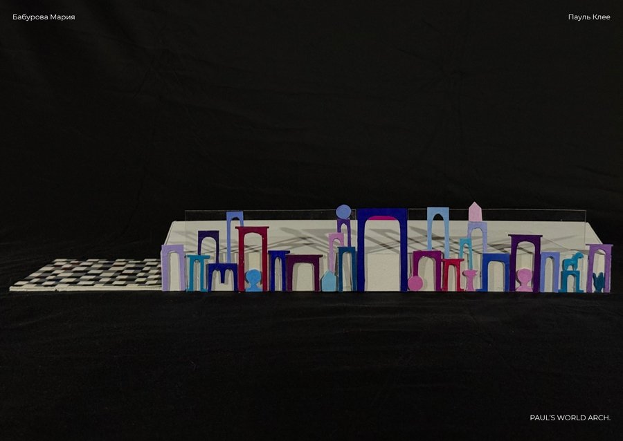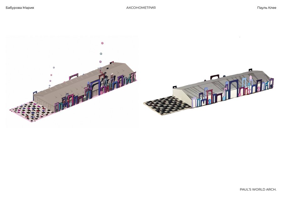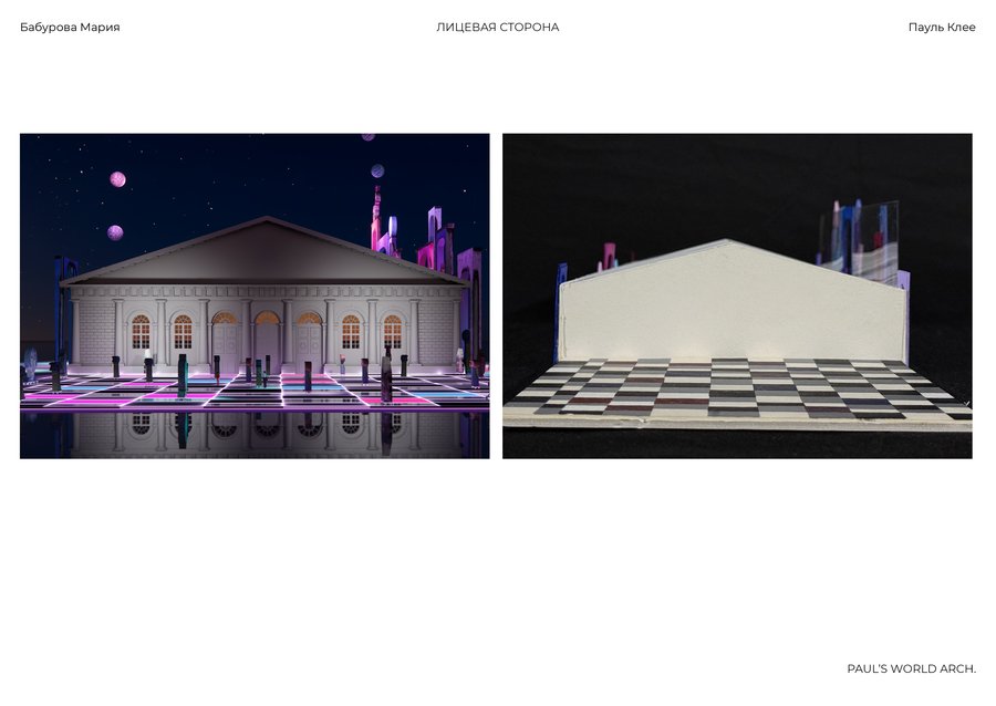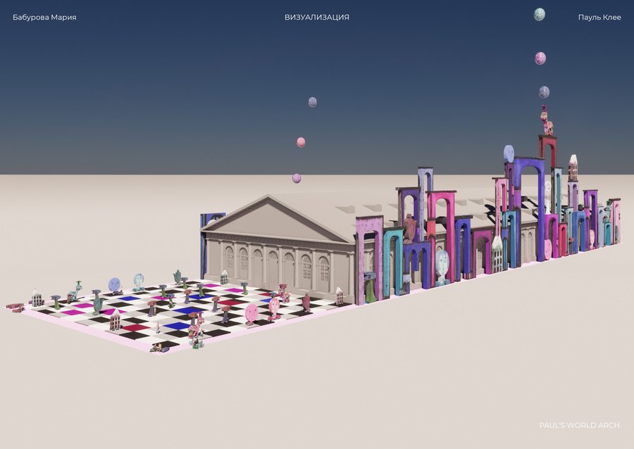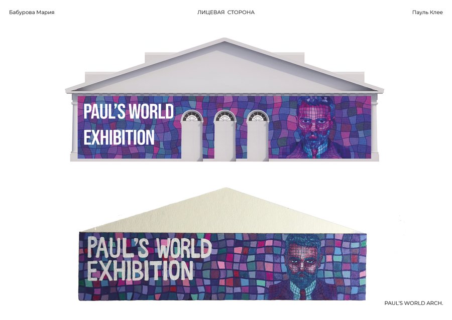 Архитектурный фасад состоит из нескольких картин Клее. Перед фронтом Манежа стоит большая интерактивная шахматная доска, по бокам — арочные элементы с шахматными фигурами. Весь фасад напоминает детский конструктор, отсылая к мотивам детства и наивности в картинах художника.