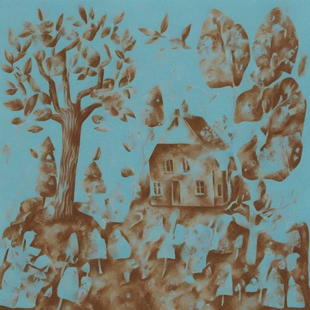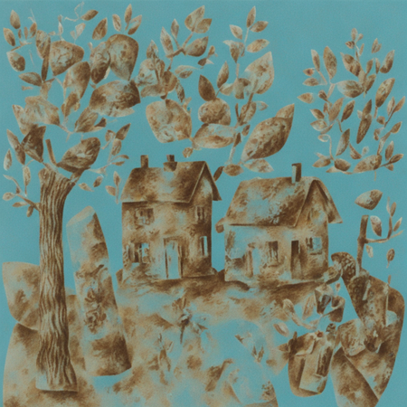 Также получились неплохие генерации с пейзажами домов и деревьев — в них ощущается коллажность и текстурность, характерные для стиля художника. Однако нейросеть нередко перегружала изображения лишними элементами, такими как цветы, листья и другие декоративные детали.