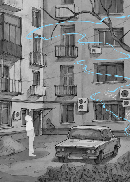 Серия графических работ для календаря, выполненных в смешанной технике (карандаш, акварель, digital), погружает зрителя в атмосферу тихой грусти, ностальгии и ускользающей памяти. Серые панельные кварталы, пустые детские площадки и подъезды, хранящие следы времени, — всё это становится фоном для размышлений о прошлом, которое уже не вернуть, но и не хочется забыть.