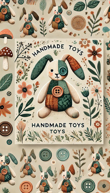 1 — generate a 2D banner to advertise on your phone for an eco-friendly fabric and soft toy shop in patchwork style with button eyes and large stitches, with nature accents.