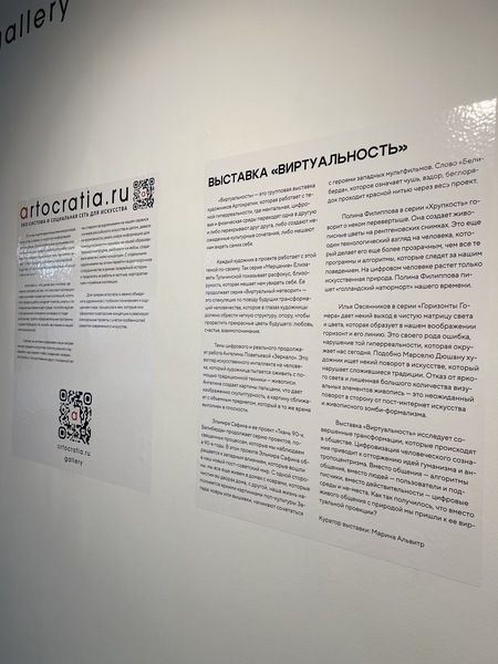 С 24 мая часть работ из серии экспонируется в выставочном пространстве «CUBE» в галерее Artocratia в рамках групповой выставки «Виртуальность».