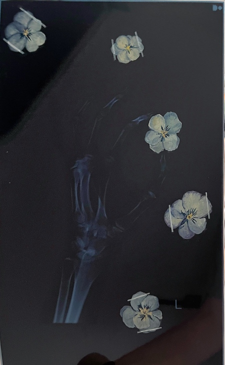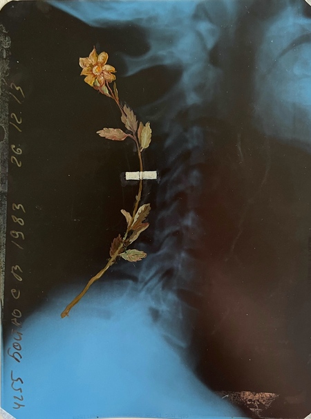 Старинная практика собирания и сохранения сухих цветов в гербарий переплетается и объединяется с медицинским документом — рентгеновским снимком, который служит подтверждением человеческой хрупкости и уязвимости. Тем не менее рентген — подтверждение жизни, в то время как растение извлеченное из почвы — репрезентация смерти. Человеческое тело предстает перед нами не в прямом его виде и выражении, а через снимок, мы ощущаем эту телесность косвенно.