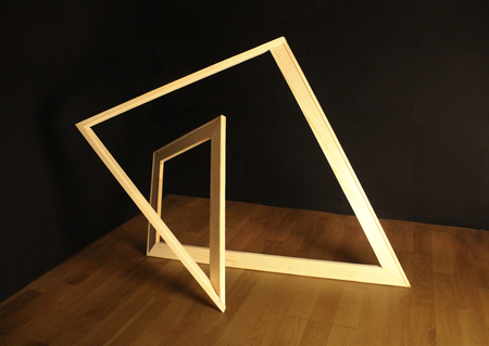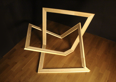 Серия объектов «Композиция № 0» работает с темой пустоты, невидимости. Подрамник в этой серии бунтует: выходит на первый план, становится видимым, не нуждается больше в холсте, принимая отсутствие предполагаемой картины и работая с обрамлением пустоты вокруг. Он вырывается из пространства плоскости, обретает тем самым самобытность.