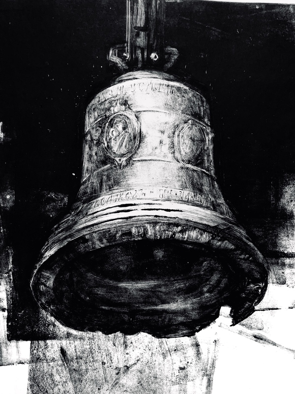 Удивительно, но колокола, утратившие свою первозданную красоту и звук, не подлежат реставрации. Их можно лишь отлить заново. Каждая трещина, каждый скол свидетельствует о исторической драмы, кроющейся за этим предметом. В работах серии «Время колокольчиков» в технике монотипия отражается эта глубокая связь между формой и историей. Колокол становится символом страданий и переживаний русского народа, сохраняя в себе память о тяжёлых временах, когда его голос был заглушен.