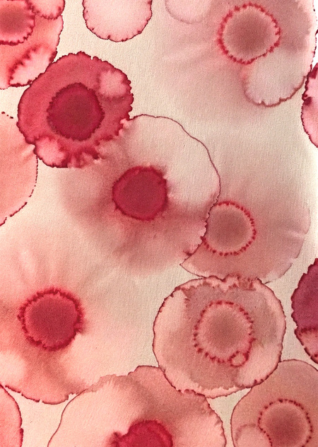 Промпт: Create an abstract image of white blood cells in a pastel pink and red palette.