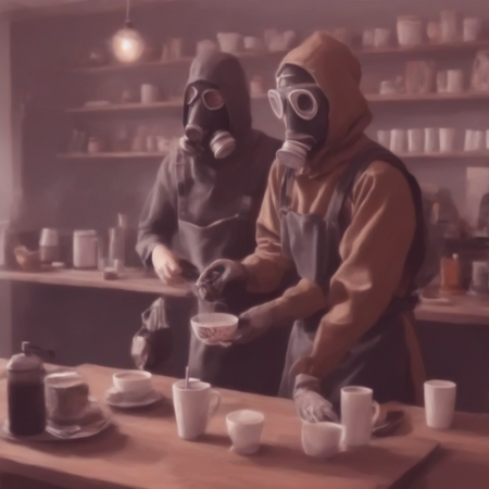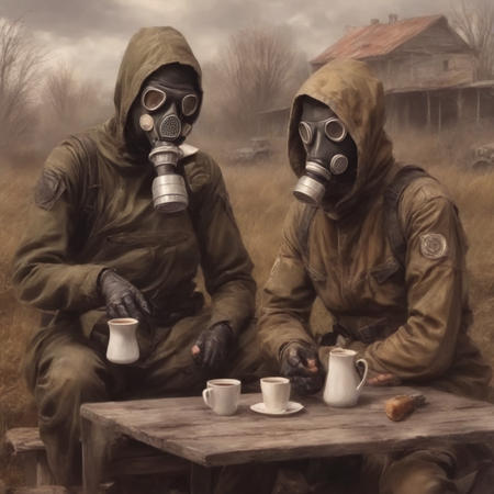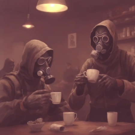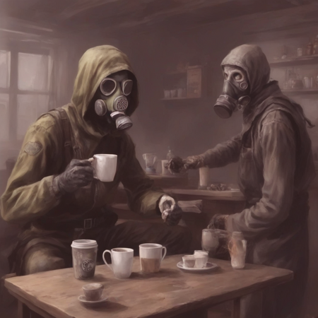 Нейросетевые изображения в стиле Сталкера — это быстрый и лёгкий способ визуализировать новости разработки игры. Такие сгенерированные картинки могут помочь нам, как инди-разработчикам, не тратить время и деньги на подбор необходимых иллюстраций для ежедневных деввлогов в соцсетях. Они разбавляют сплошной, скучный текст о проделанной работе в группе телеграмма или подобных пабликов. Концепция самой игры — это постапокалиптичный мир сталкера, в котором нашлось время для горячей чашечки бодрящего напитка.