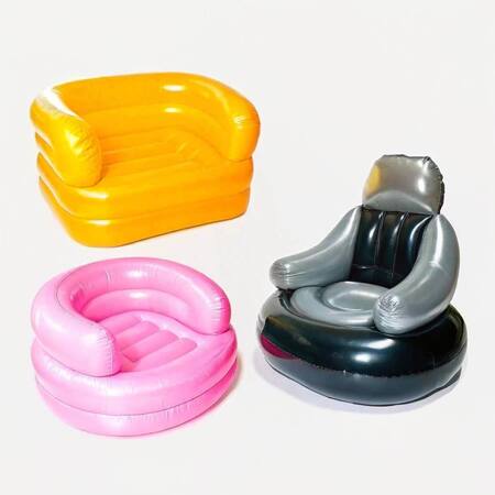 Промт: «Цветные надувные кресла в ярких оттенках, расположенные под ярким студийным светом.»