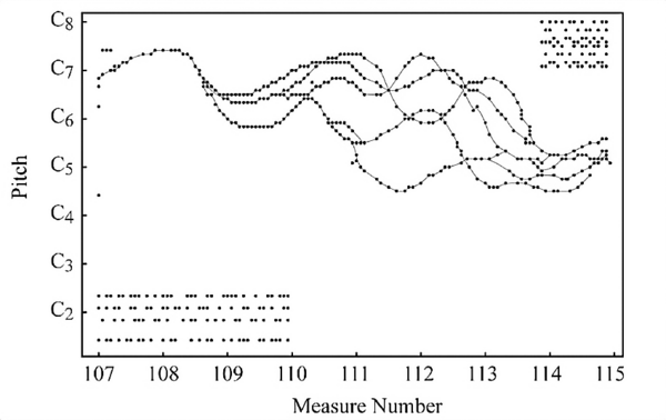 Как правило, Ксенакис всегда преобразовывал свои графические партитуры в традиционную нотную форму.