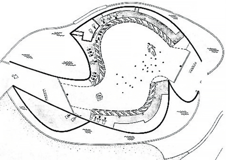 Чертеж «Политоп в Персеполисе». Автор Янис Ксенакис. 1971 г.