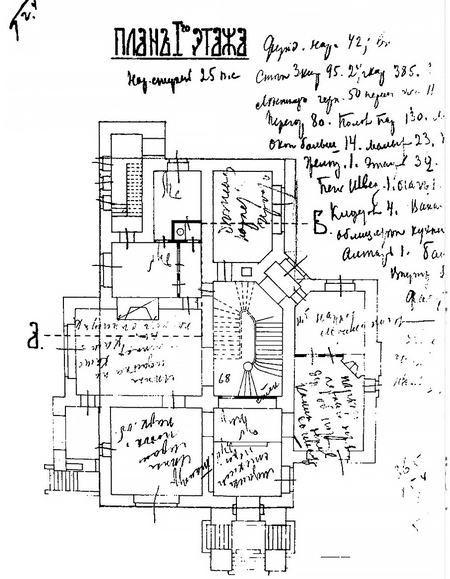 План 1-го этажа. Автор ФЕдо Шехтель. Дата неизвестна.