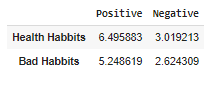 Анализируя получившиеся таблицы, можно и вправду сказать, что в видео о полезных привычках большое количество времени уделено разговору о лучшем образе жизни для человека, о необходимости соблюдения рутины и временного плана — однако второе слово «BAD» , свидетельствует о наличии разграничений на черное и белое в видео, которое к этому не относится. В статистике о вредных привычках по получившимся данным, можно говорить о наличии информации по теме привычек, связанных с нездоровым образом жизни.