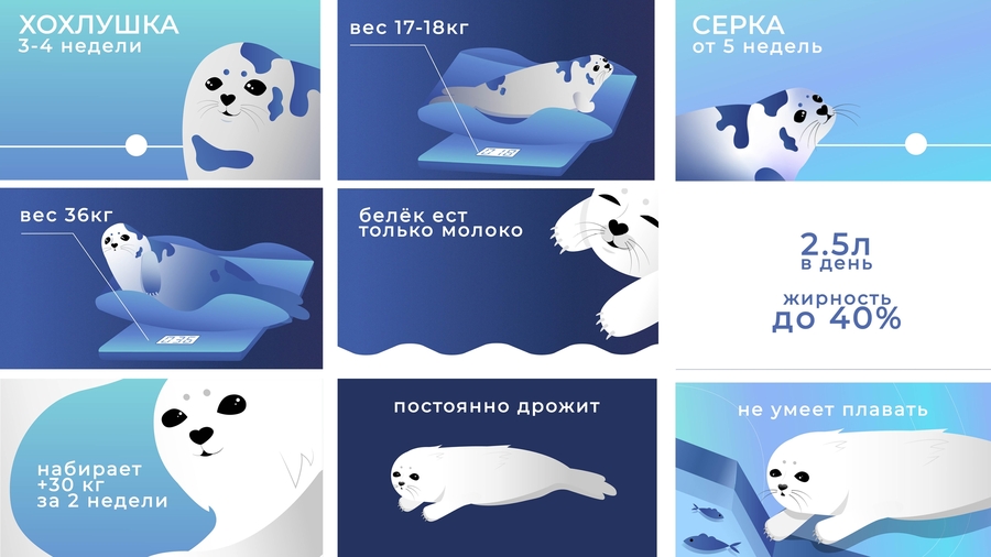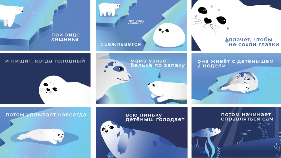В ролике представлены факты о тюленях, их стадии взросления и особенности