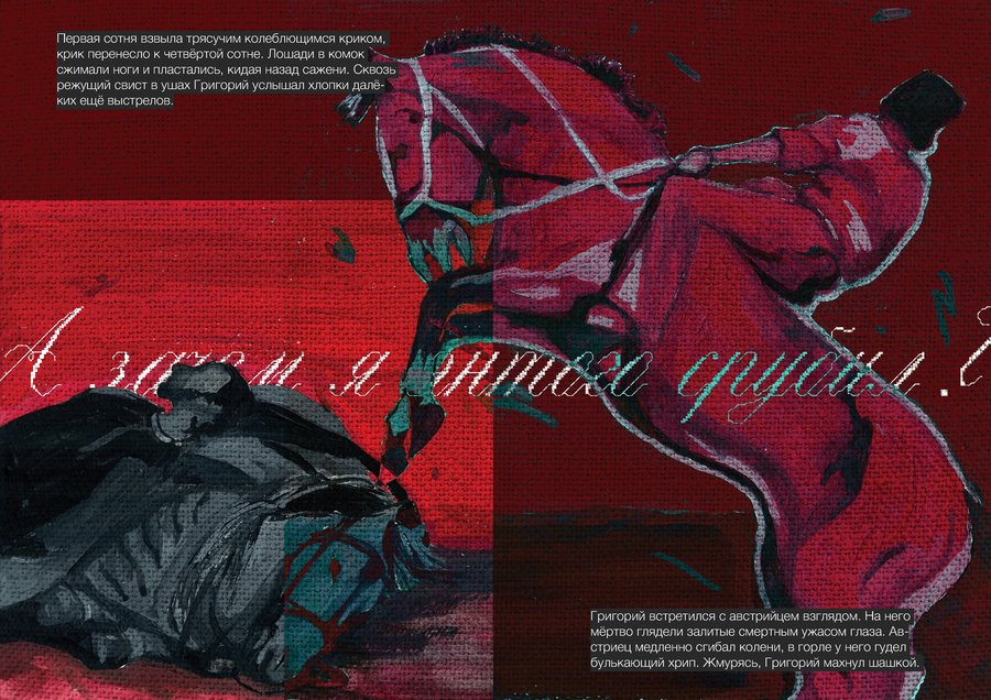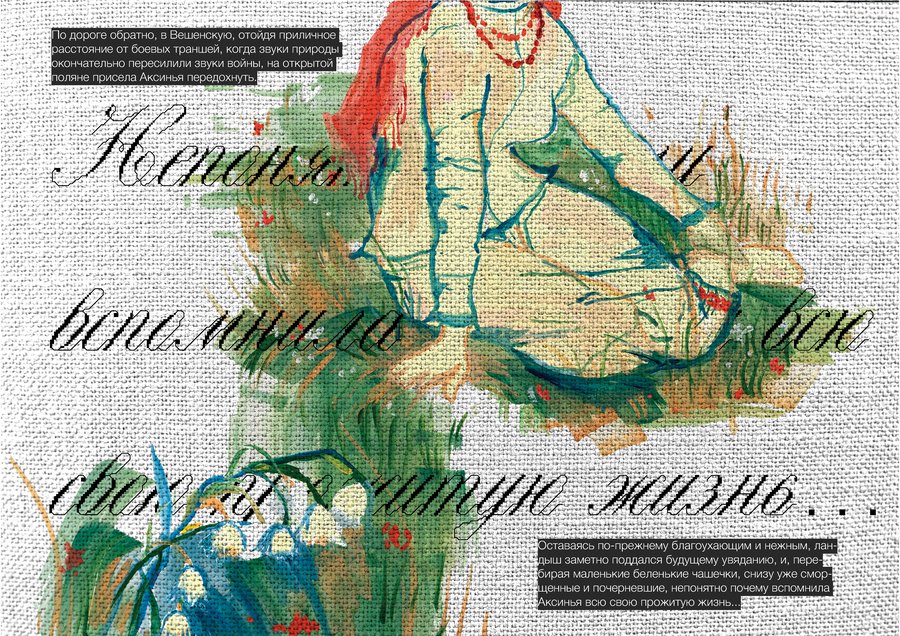 Мне захотелось передать эту двойственную казачью натуру и неразрывную связь героев с природой, которая, подобно им, отнюдь не всегда «тихая». Я попыталась сделать это с помощью иллюстраций, а также фотографий.