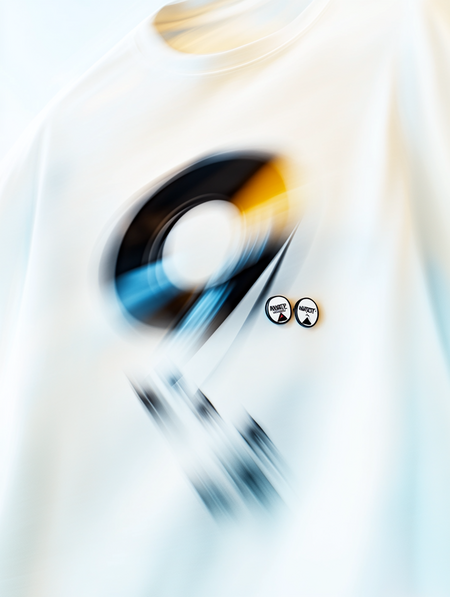 Промпт: «Design the identity for the ANTIGRAVITATOR brand, Create an identity for the Branded products: a T-shirt, keychain, badges and a sticker pack, whose packaging is made of different textures. The background is white. Make a T-shirt, keychain, badges and a sticker pack».