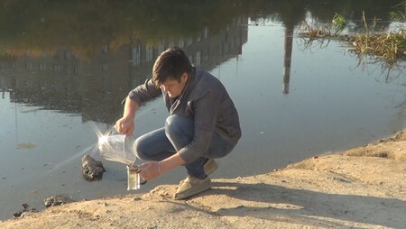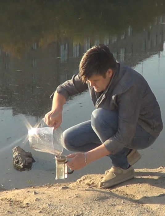 Я стою у берега реки Миасс в Челябинске. В руках чайное ситечко и литровый кувшин. Я набираю воду из реки, процеживаю её через ситечко и выливаю обратно. Этот ритуал повторяется снова и снова.