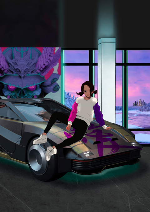 Общее восприятие интерьера: Обилие неоновой подсветки, грубых, темных, глянцевых материалов (бетона, керамогранита, металла, стекла), угловатая кожаная и стеклянная мебель в стилистике модернизма, поражающие воображение потолочные люстры и светильники, акцентные детали в виде огромных аквариумов и выставочных автомобилей. В интерьерах прослеживаются отсылки к аниме, видеоиграм, фильмам кибер-будущего.