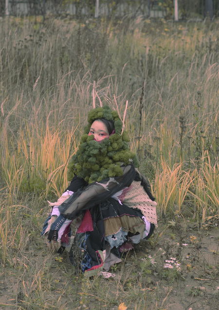 Я постаралась художественно осмыслить трансформацию воли к жизни как принципа активности. Верхняя часть костюма, мох, отсылают к стойкости в природном мире. Мох является чистым воплощением принципа жизни, он растет даже в самых непригодных для существования местах, от вечной мерзлоты до ядерной пустоши. Нижняя часть костюма репрезентирует этот же принцип в субъектном мире. Человек укореняется в бытии посредством творческого самоконструирования, создавая себя в целостности персоны из фрагментов чувств, открытий, опыта и др. Подобно гетеротопному полотну штанов и кофты, человек властвует через сшивание в себе различий.